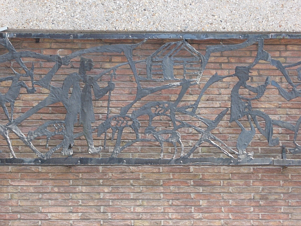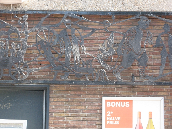 Muurdecoratie aan de St. Jansstraat aan het pand van AH, met een lengte van 15 meter.
