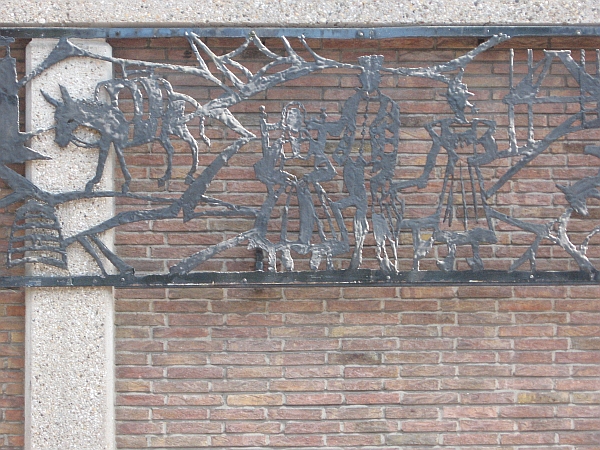 Vervaardigd door Cees Snoey sr ( (Rotterdam, 1922 - Laren, 18 februari 2012), naar een tekening van de Hilversumse kunstenaar Jacques de Wit (Geboren 13 mei 1898, Roosendaal en Nispen (Roosendaal). Gestorven: 29 oktober 1983, Hilversum)