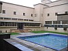 Binnentuin met vijver, volledig omsloten door het raadhuis.